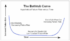 電子產(chǎn)品的壽命一般都符合浴盆曲線,可分為三個(gè)階段: