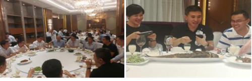 提前到達的朋友們有口福!熱情好客的東阿阿膠王總和馮總,為遠道而來的嘉賓特意舉辦歡迎晚宴,我們有幸成為高大上宴會廳的首批訪客!