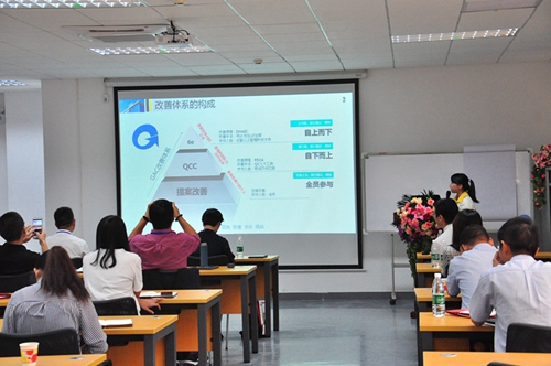 下午做分享的是年輕帥氣的制造部楊部長。楊部長是一期項目的負責人,也是公司改善委員會委員長。他系統全面地介紹了阿雷斯提8年的改善歷程。