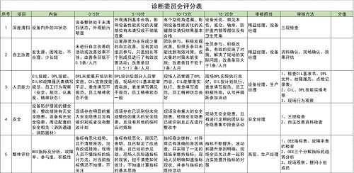 在TPM咨詢管理活動的推行小組中,成立TOP診斷委員會,明確成員具體分工,建立診斷評分表。